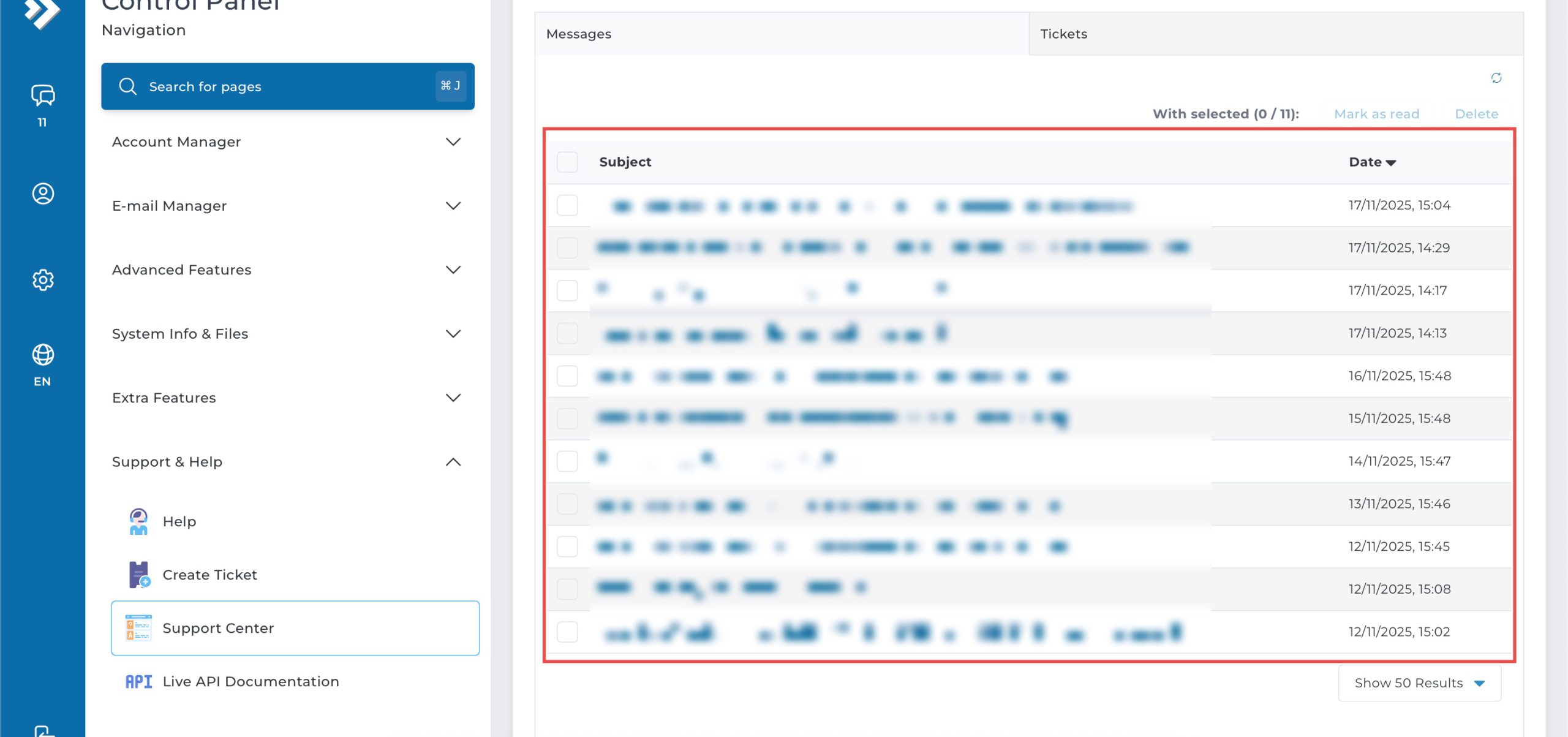 System messages in DirectAdmin provide important notifications about account activities and system events, but managing large volumes of messages efficiently requires advanced deletion options. Clearing messages by subject keywords or date ranges helps maintain an organized message inbox without manually selecting individual notifications. DirectAdmin’s Message System interface provides flexible filtering criteria for bulk message deletion based on content or timing. This guide explains how to clear system messages using criteria-based deletion in the Message System section in DirectAdmin, enabling you to efficiently manage notification history and maintain focus on relevant alerts.