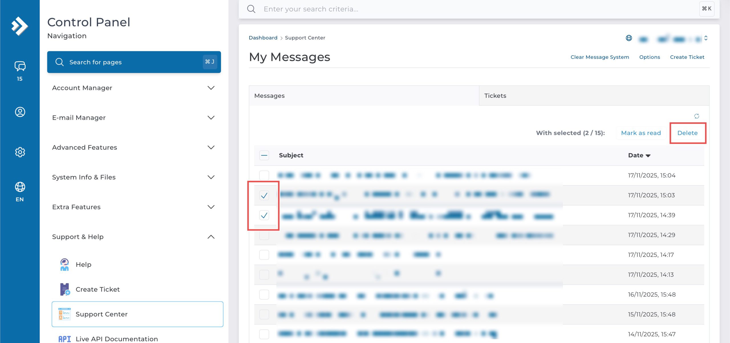 Deleting system messages through DirectAdmin’s Message System interface is a simple process that helps maintain an organized control panel. Removing individual notifications or clearing all messages at once ensures your message inbox remains focused on current and relevant system information, improving overall account management efficiency.
