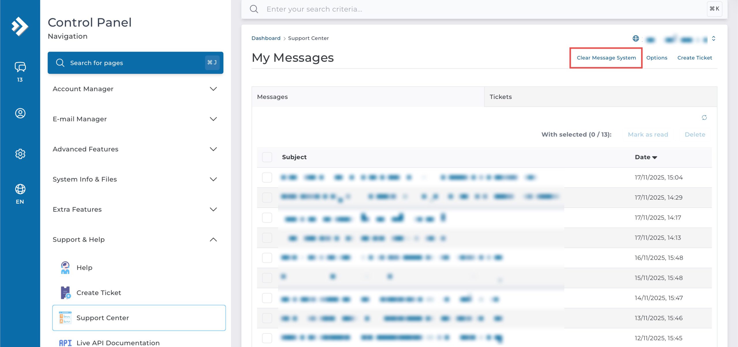 System messages in DirectAdmin provide important notifications about account activities, system events, and administrative alerts, but managing these messages is essential for maintaining an organized control panel. Clearing read notifications, removing outdated alerts, or decluttering your message inbox helps maintain focus on current system information. DirectAdmin’s Message System interface provides a straightforward method for removing individual messages or clearing all notifications simultaneously. This guide explains how to delete system messages using the Message System section in DirectAdmin, enabling you to maintain a clean and organized notification interface.