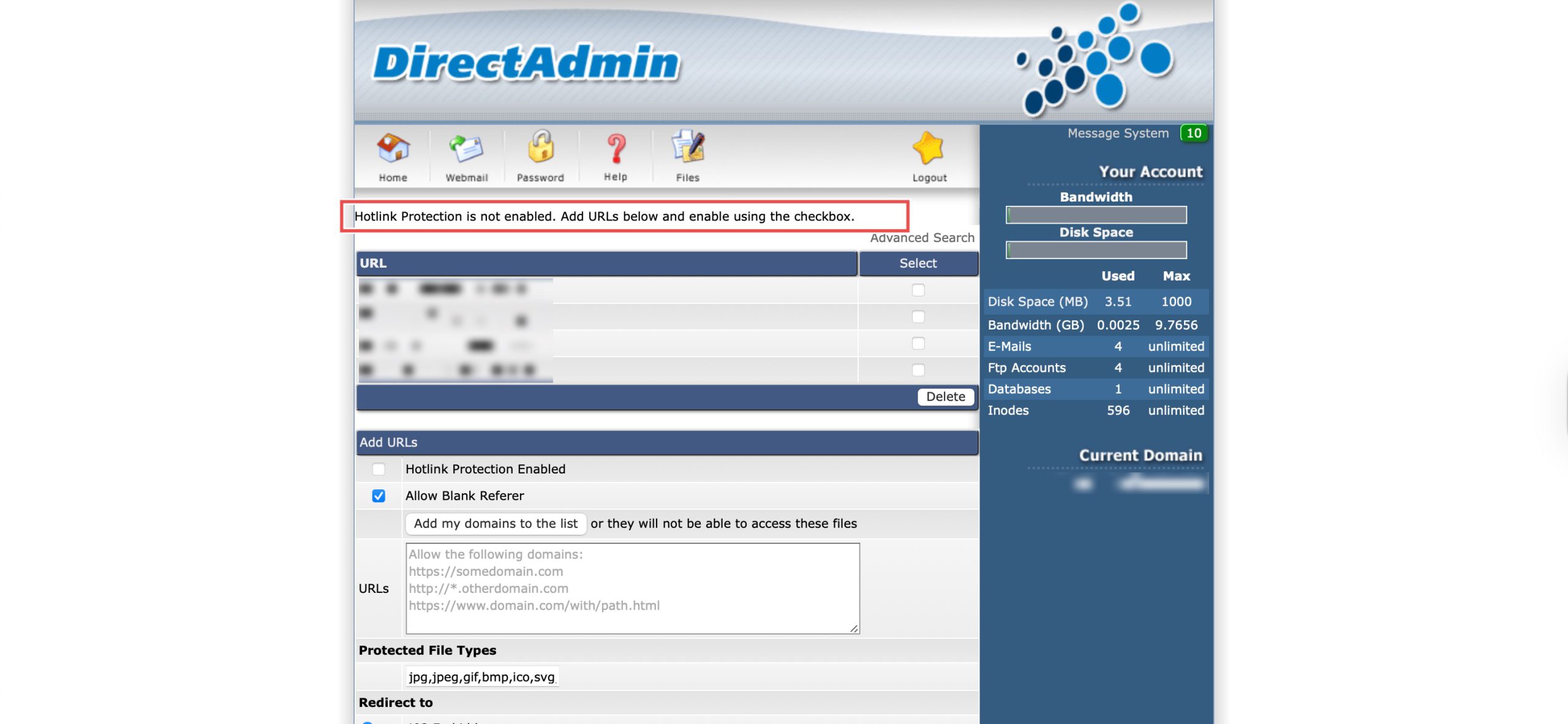 How to Disable Hotlink Protection in DirectAdmin (Enhanced Skin)