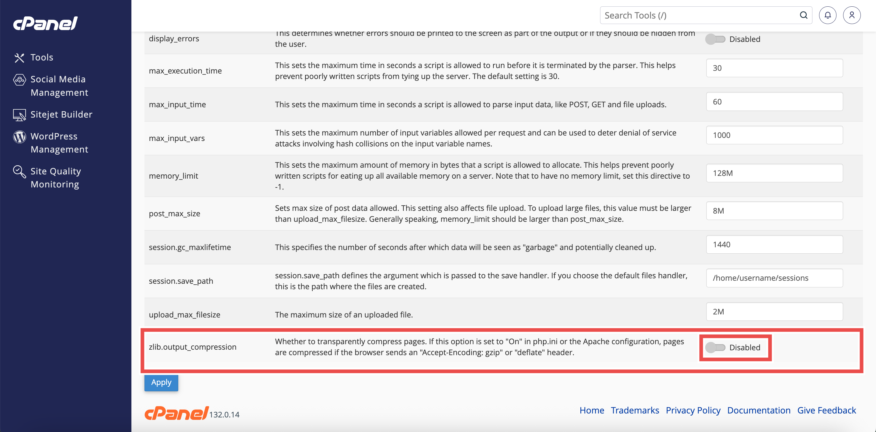 By following these steps, you can disable page compression for a specific website using MultiPHP INI Editor in cPanel. While compression generally improves performance, disabling it for individual domains may be necessary for debugging or when using alternative compression methods without affecting other websites.