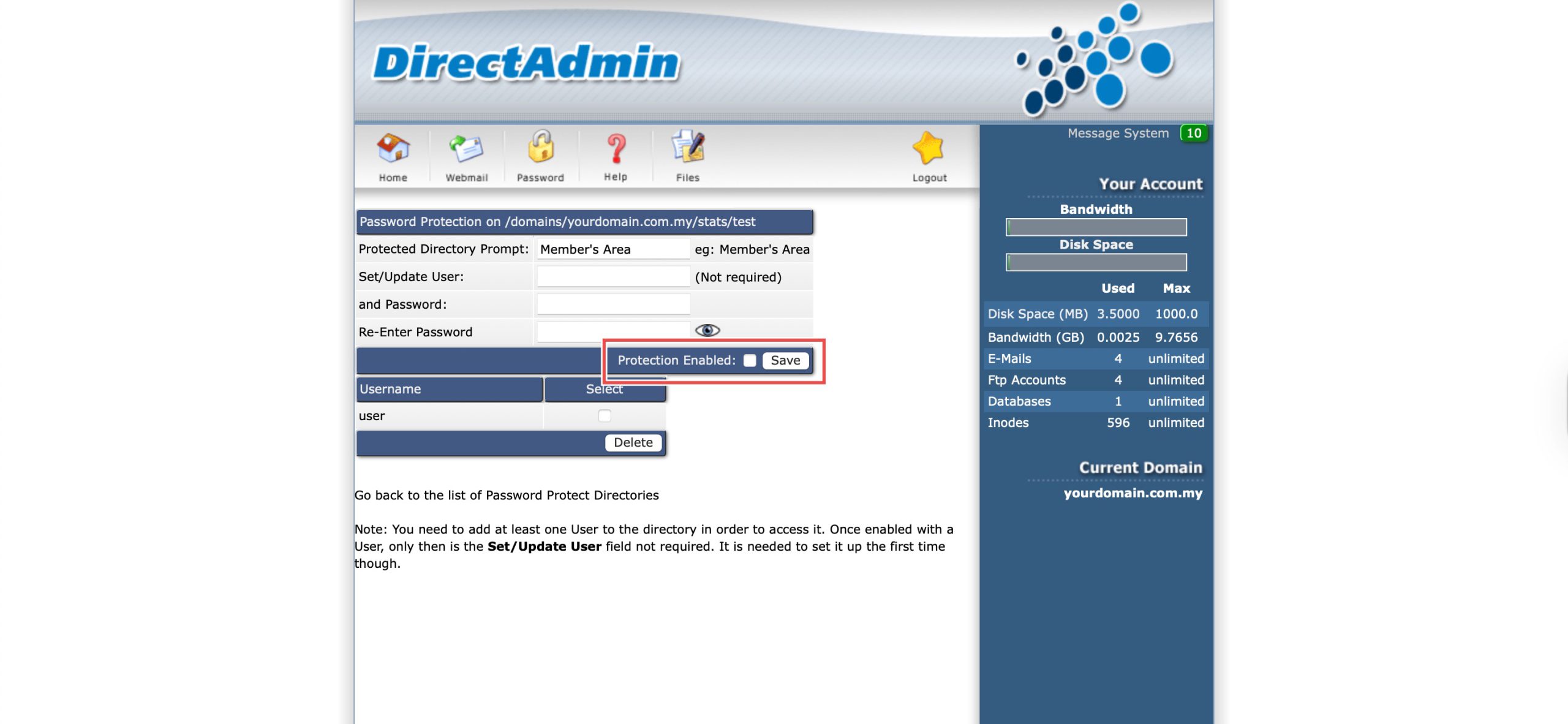 How to Disable Password Protection for Directories in DirectAdmin (Enhanced Skin)