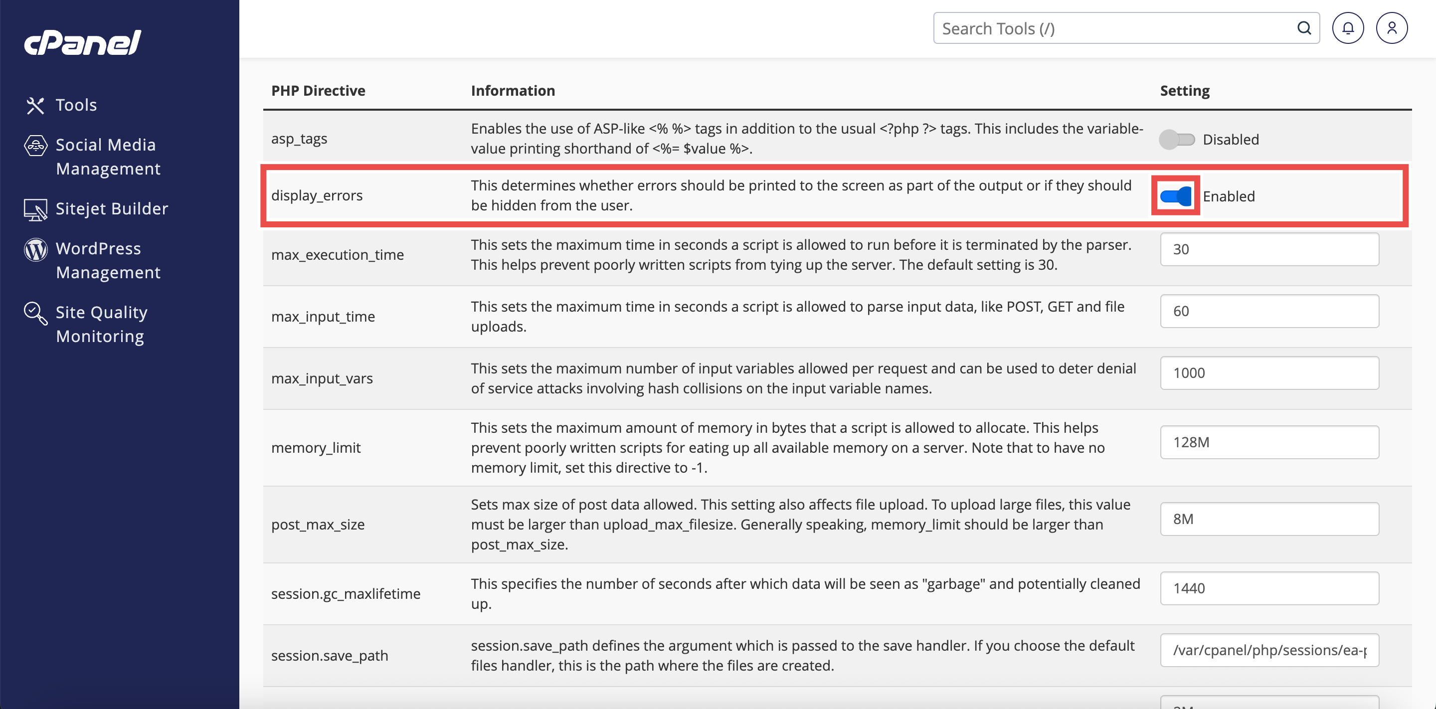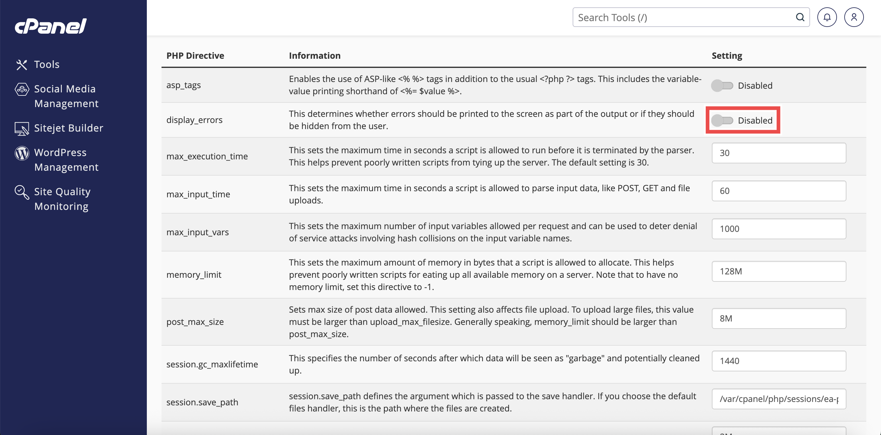How to Disable PHP Error Display for Specific Website using MultiPHP INI Editor in cPanel