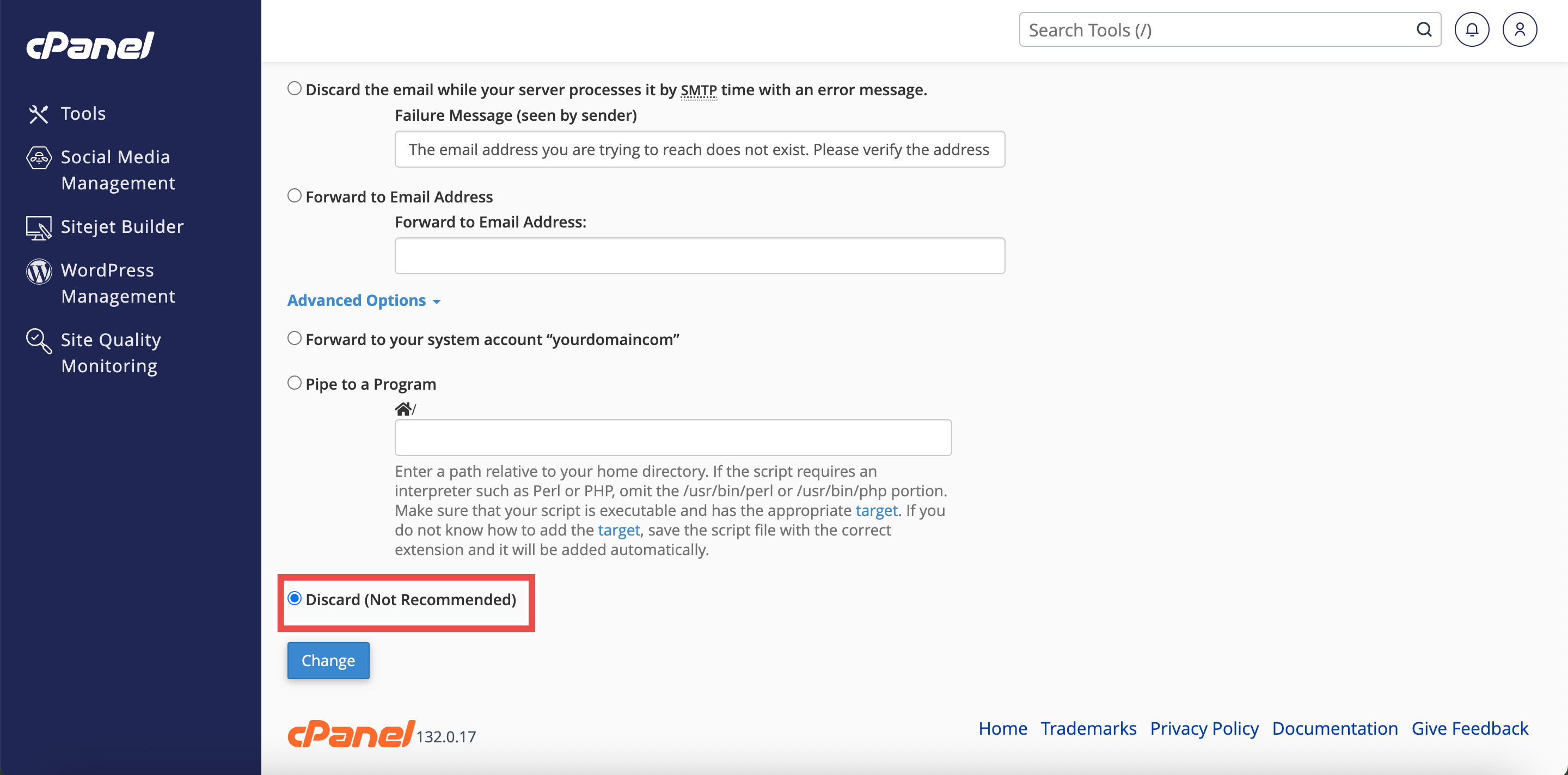 By following these steps, you can discard unrouted emails without sender notification using Default Address in cPanel. However, this method is not recommended for most situations as it prevents legitimate senders from knowing their messages failed to deliver. Consider alternative options that provide sender feedback unless you have a specific reason to silently discard unrouted emails.