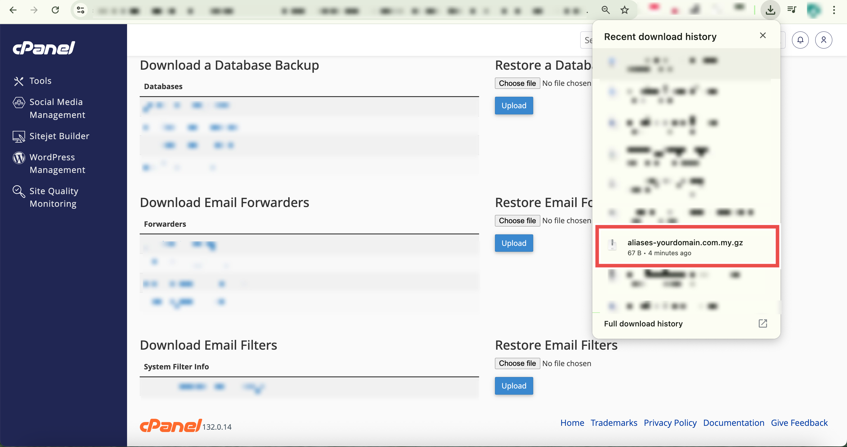 Step 4: Download the Email Forwarders Backup