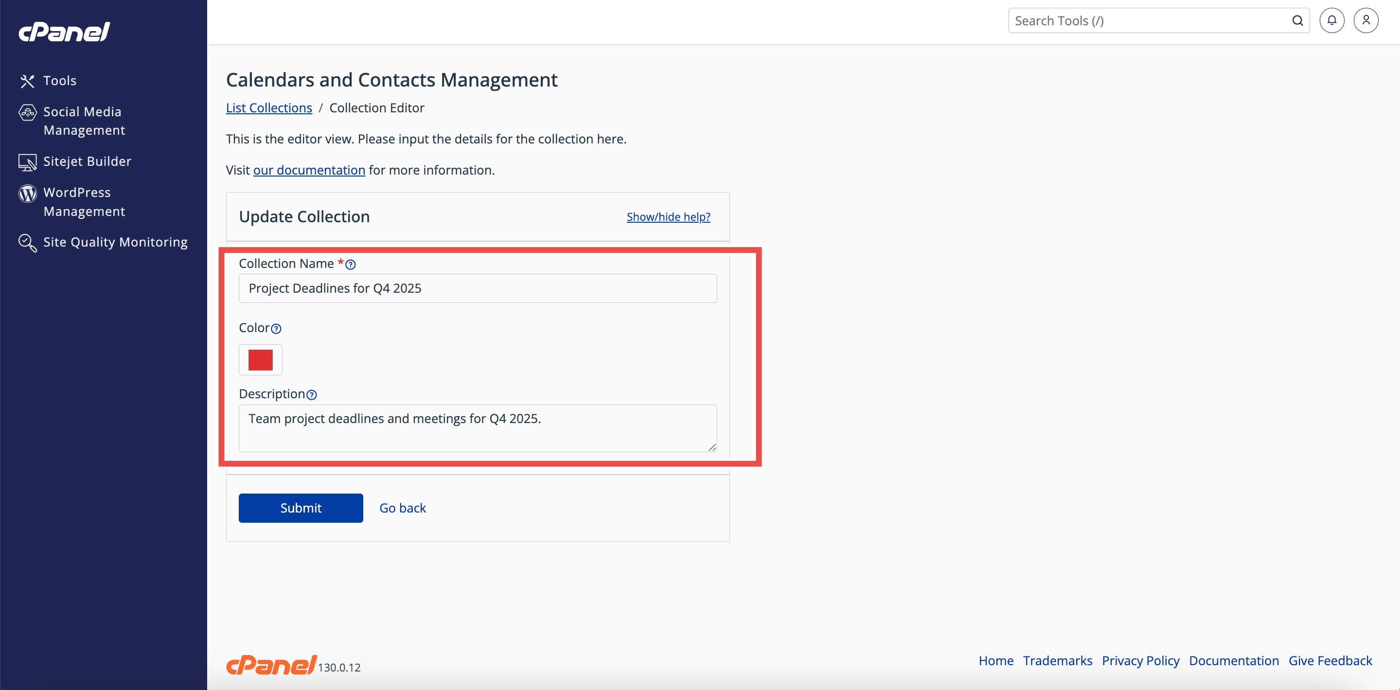 By following these steps, you can easily edit a calendar in cPanel to keep your schedules accurate and organized. Always verify that the updates appear in the Calendars and Contacts Management table to confirm successful changes.