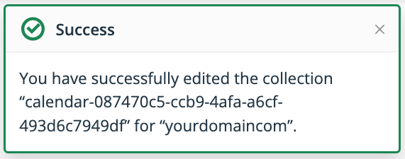 - Check the Calendars and Contacts Management table to ensure the updated calendar details appear correctly.