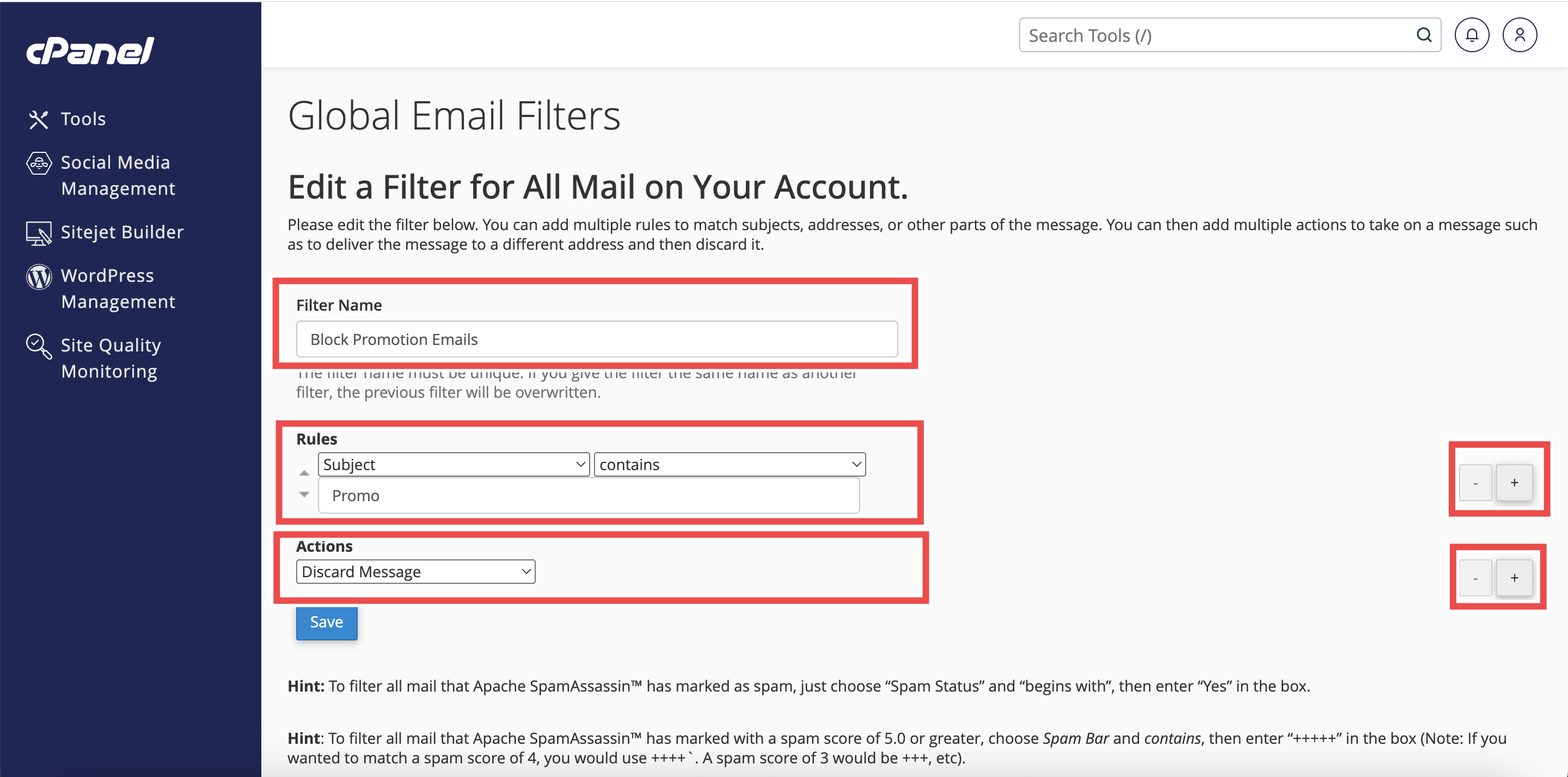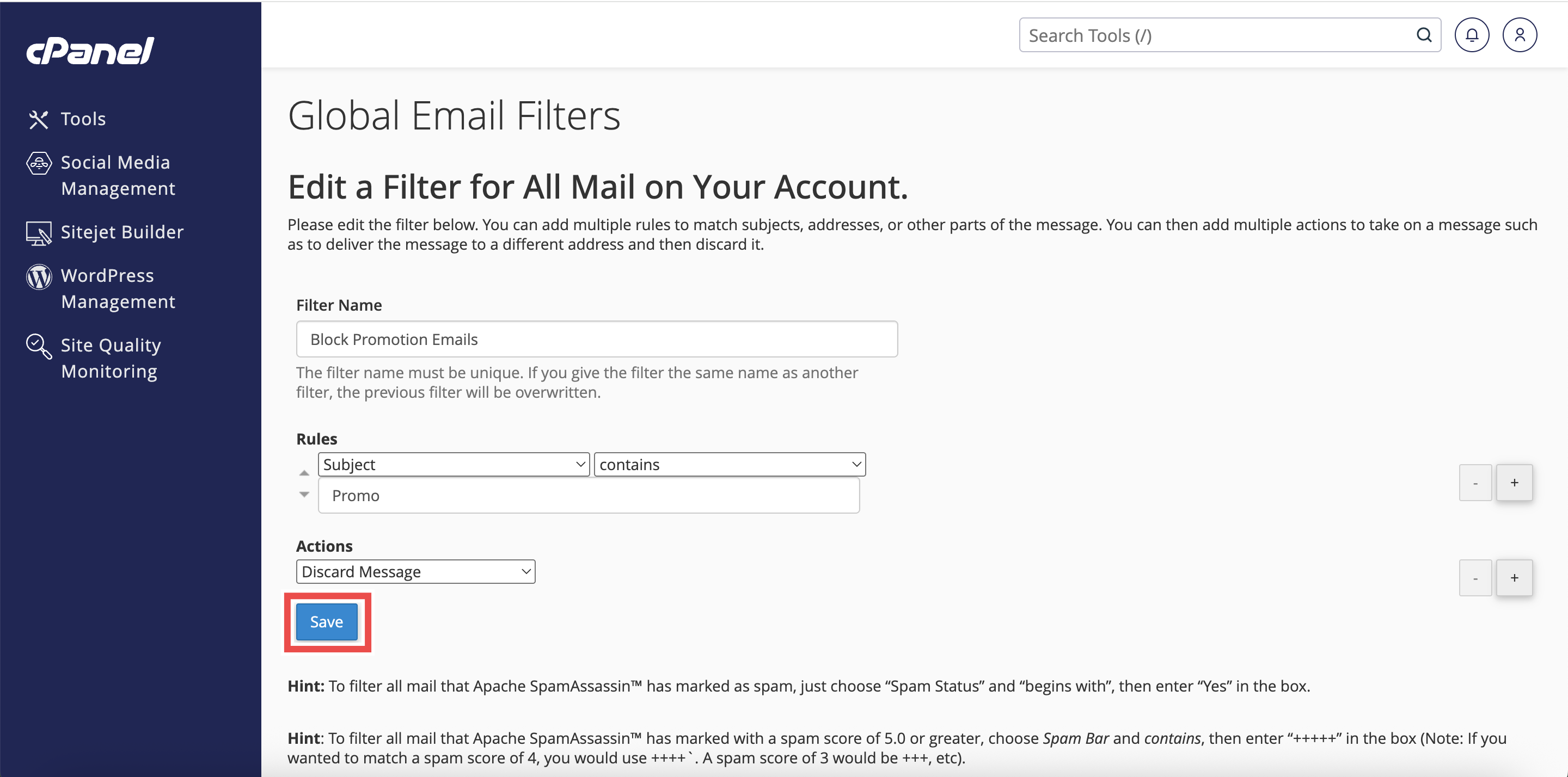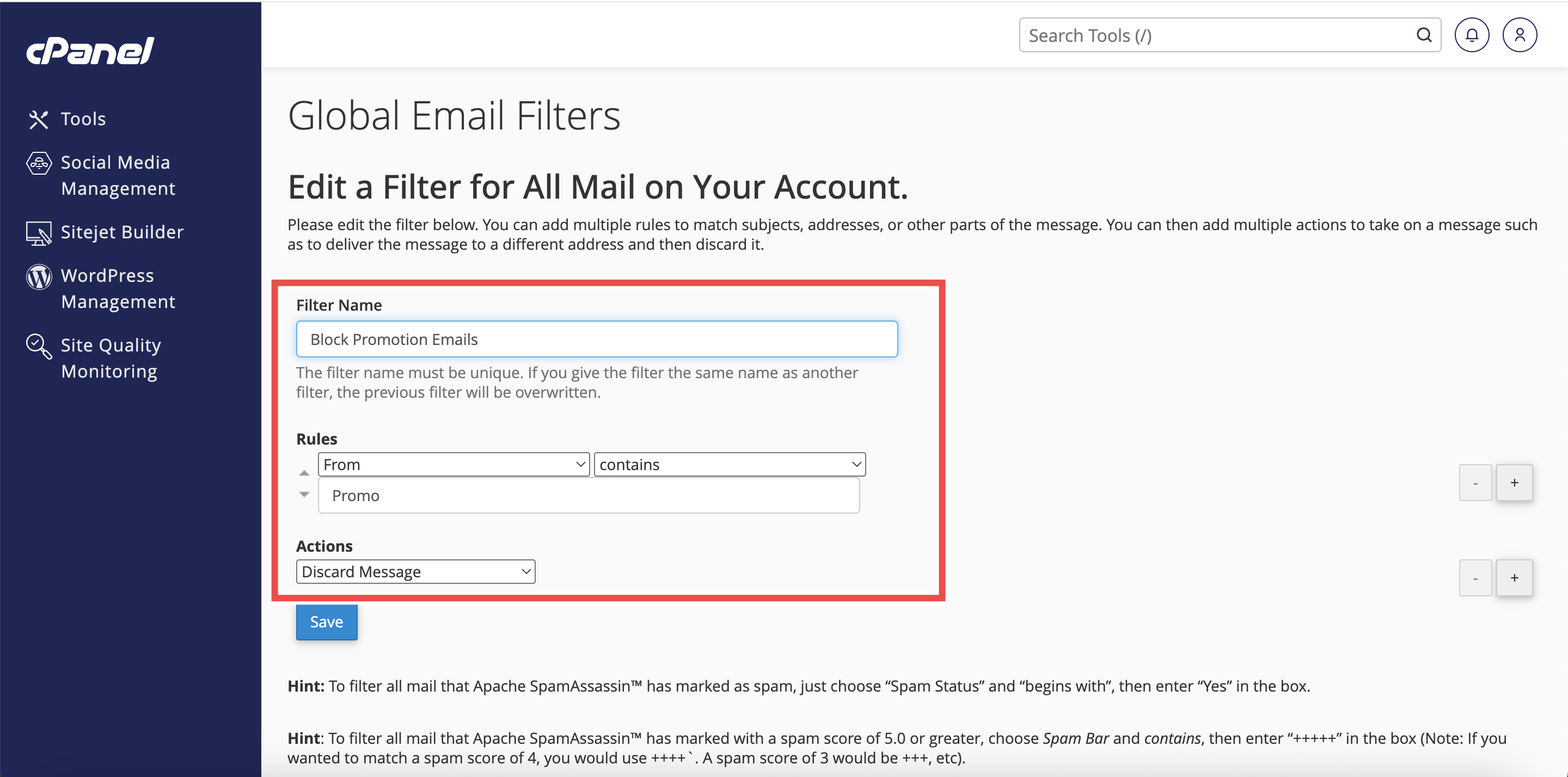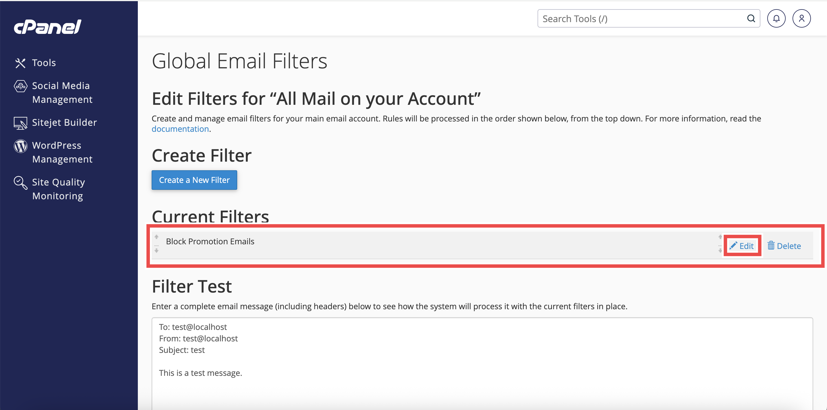 How to Edit a Global Email Filter in cPanel