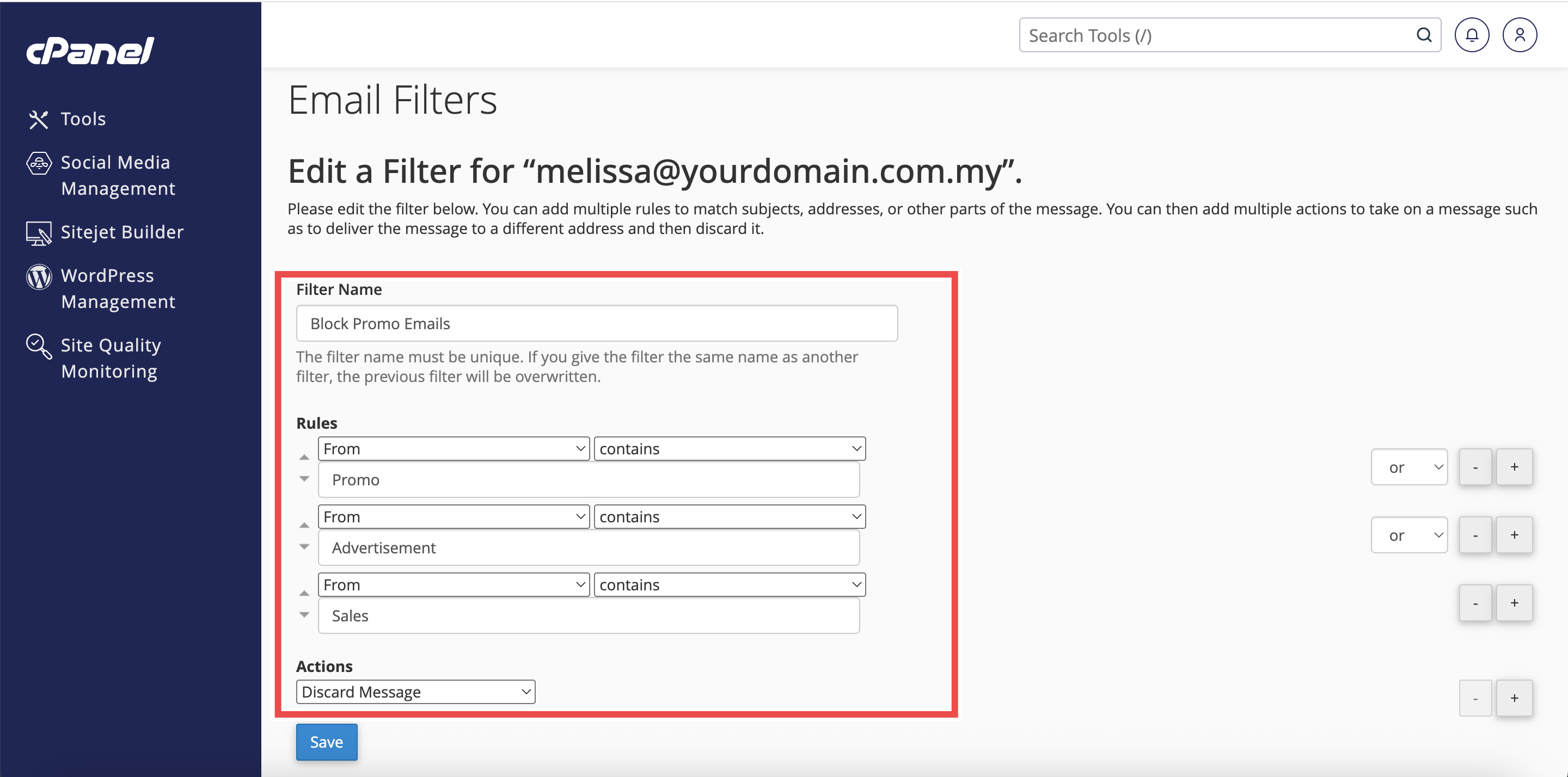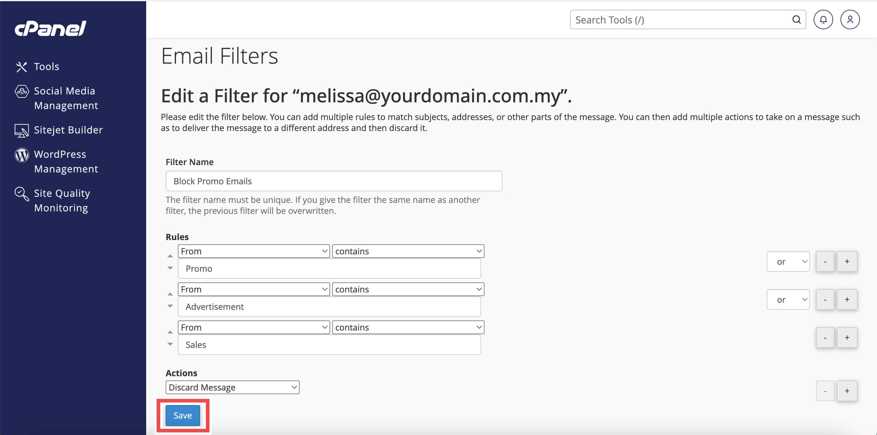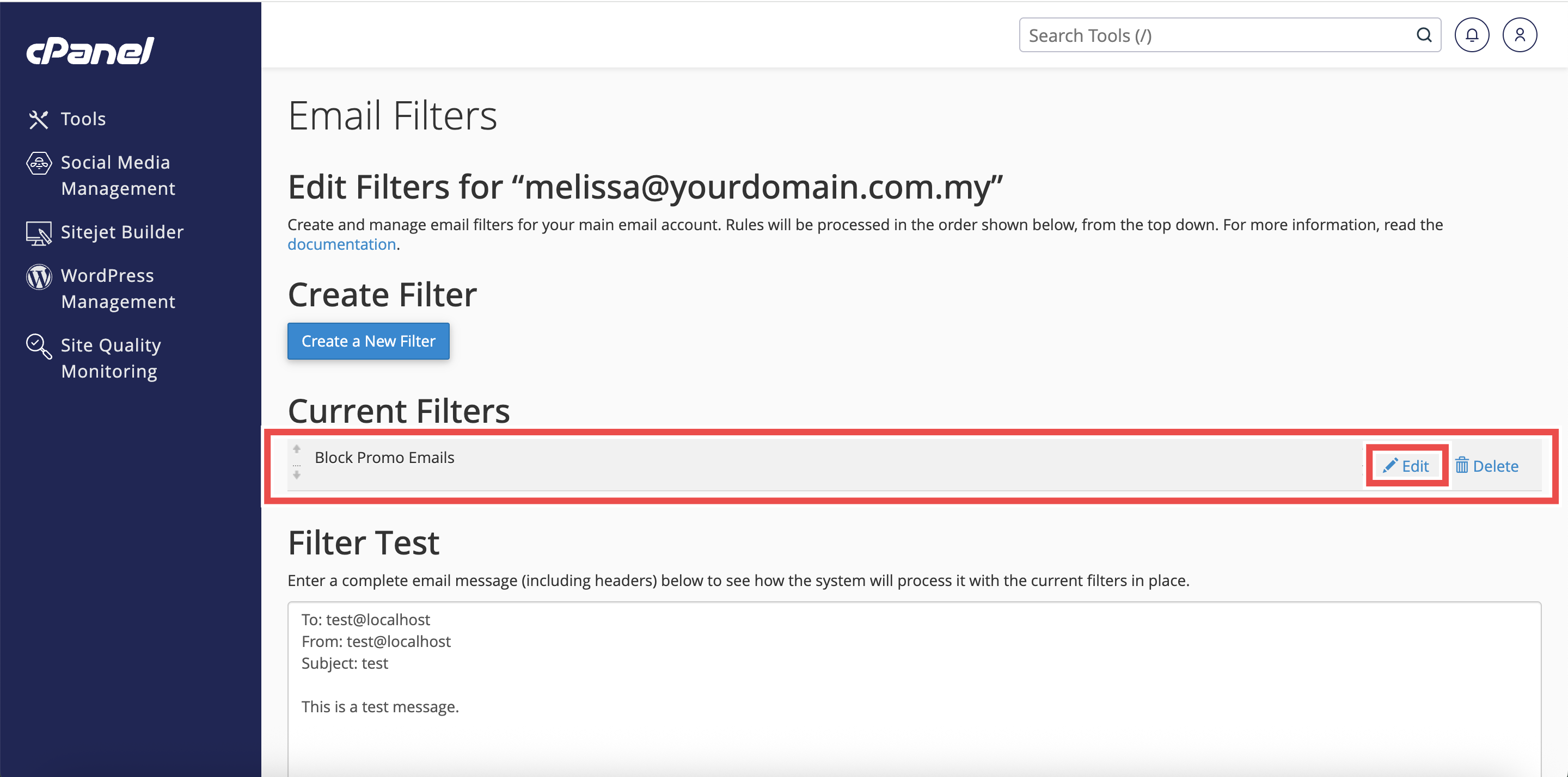 By following these steps, you can easily edit an existing email filter in cPanel to ensure your inbox rules remain accurate and effective. Regularly reviewing and updating filters helps maintain organized email management.