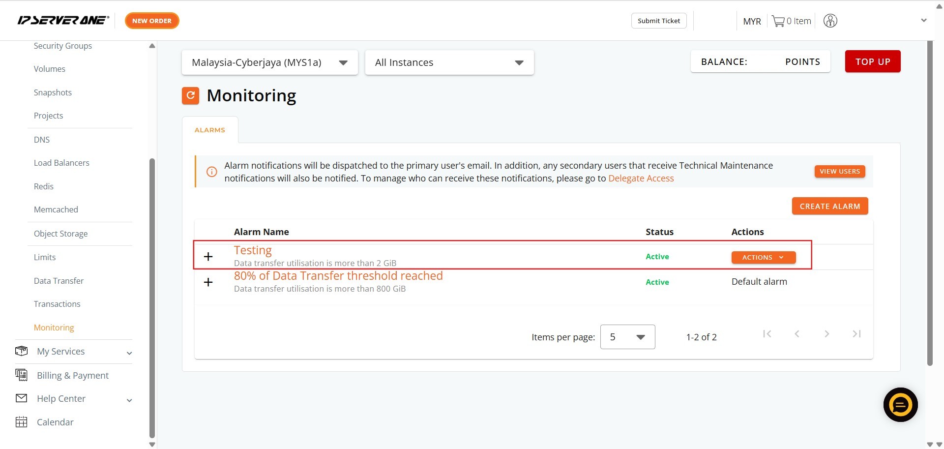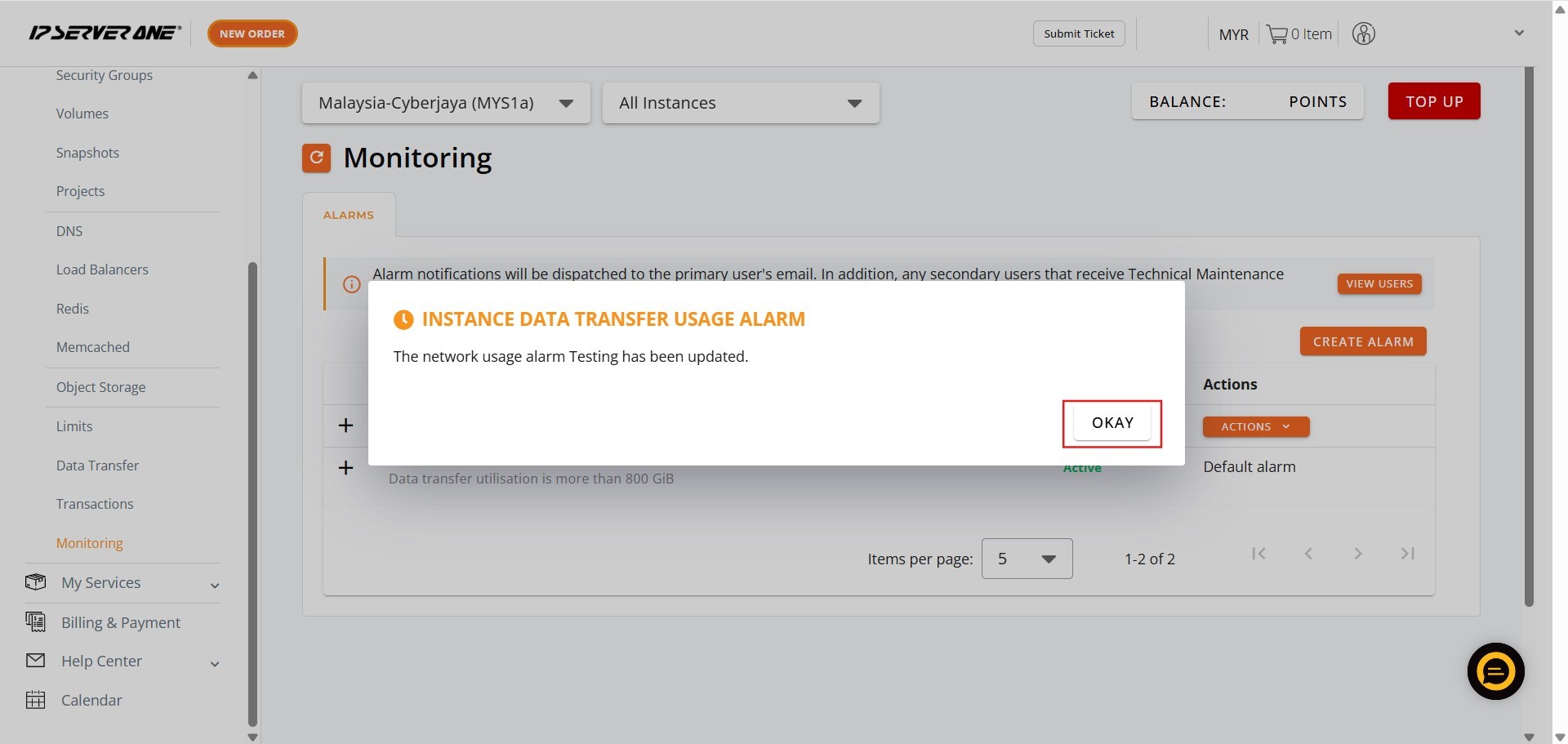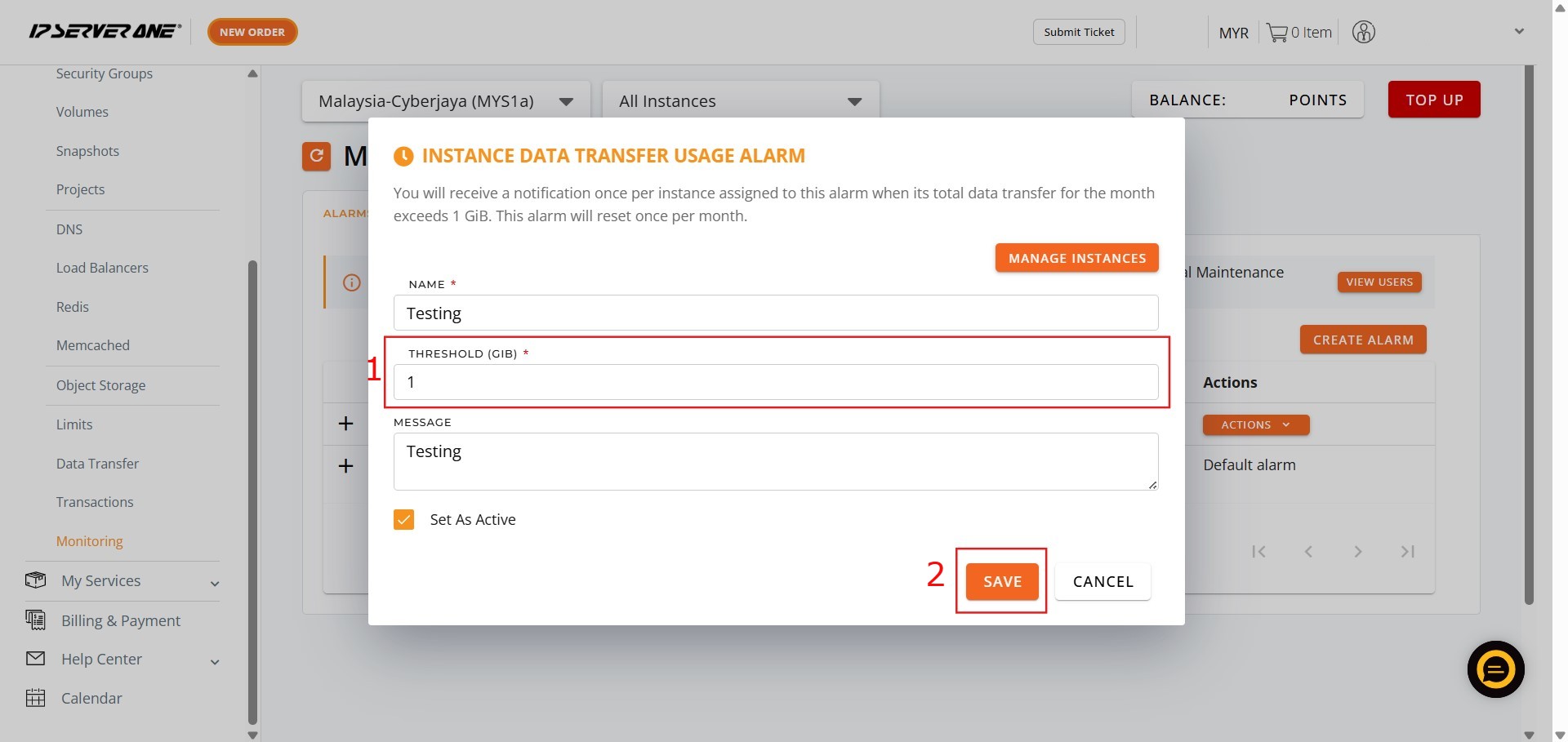 How to Edit Monitoring Bandwidth Usage Alarm Threshold in Customer Portal