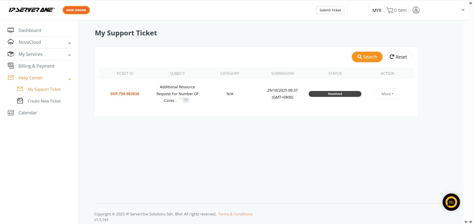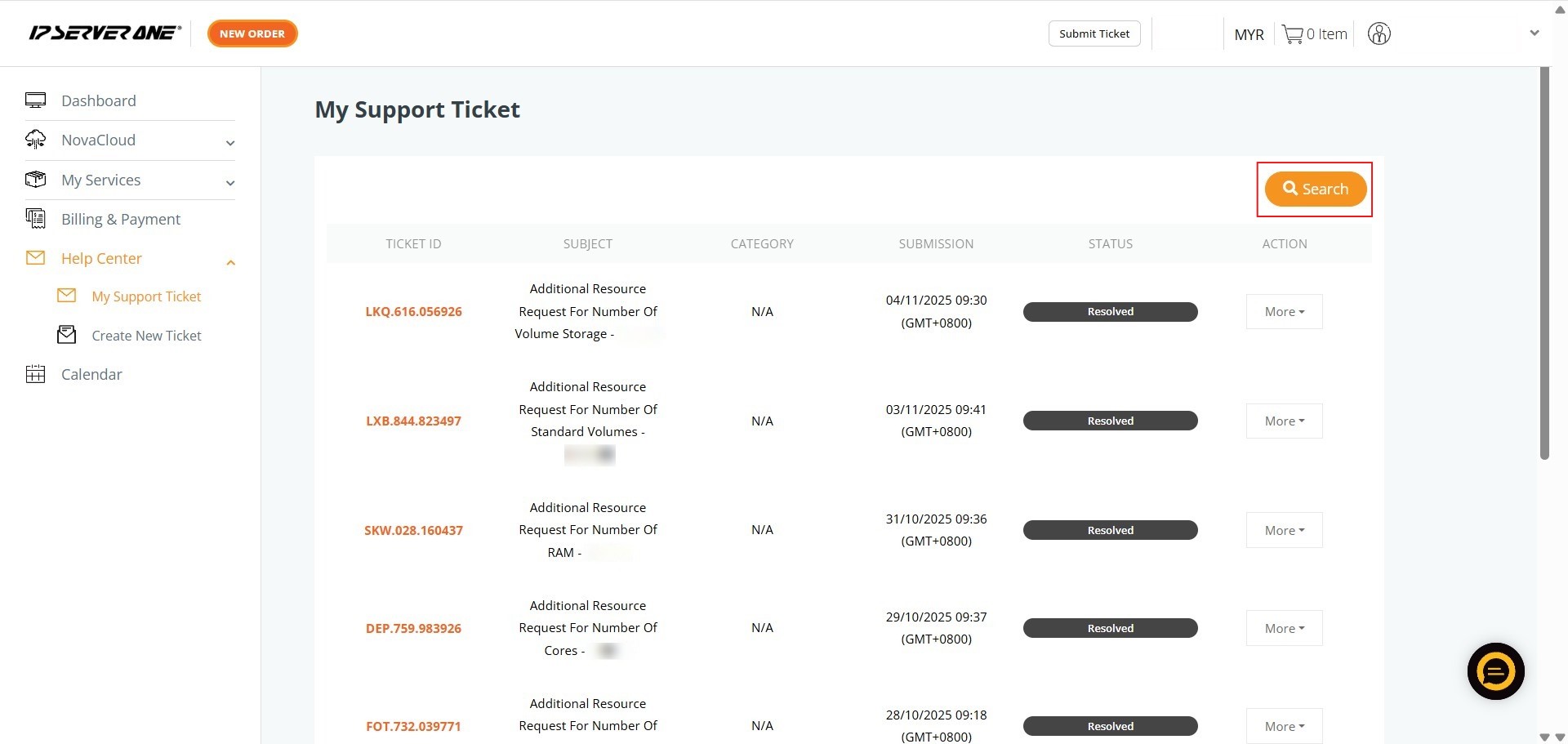 Maintaining a clear record of technical support is essential for a well-managed cloud environment. The IP ServerOne Customer Portal offers a centralized Help Center where users can efficiently track the status of their inquiries or revisit past technical solutions.