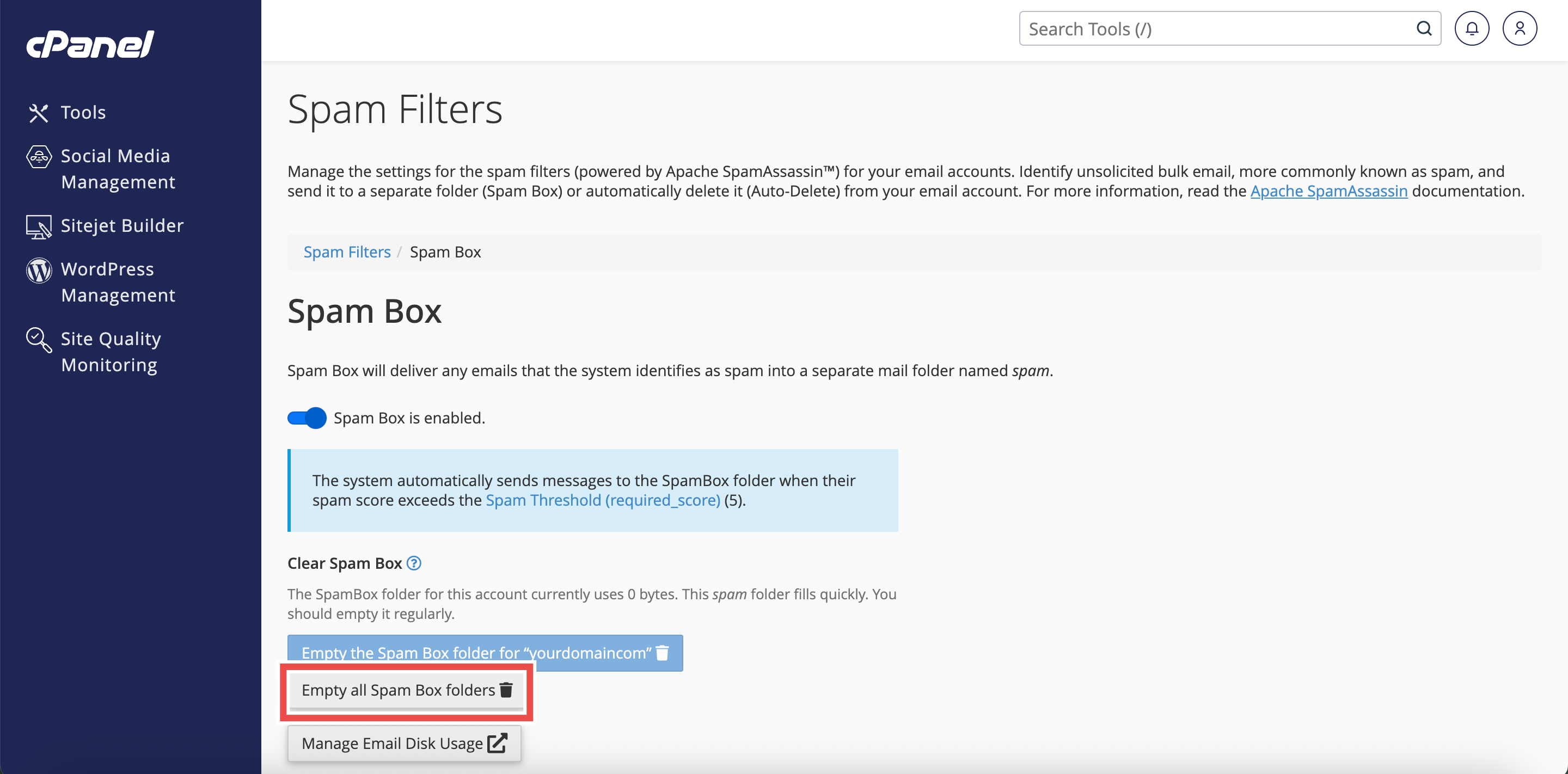 How to Empty the Spam Box Folders using Spam Filters in cPanel