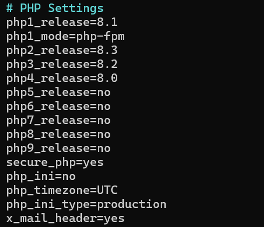 🖊️ Tip: phpX_mode is optional if using the default php-fpm mode, so it can be safely omitted unless a different mode (like mod_php, lsphp, or cgi) is needed.
