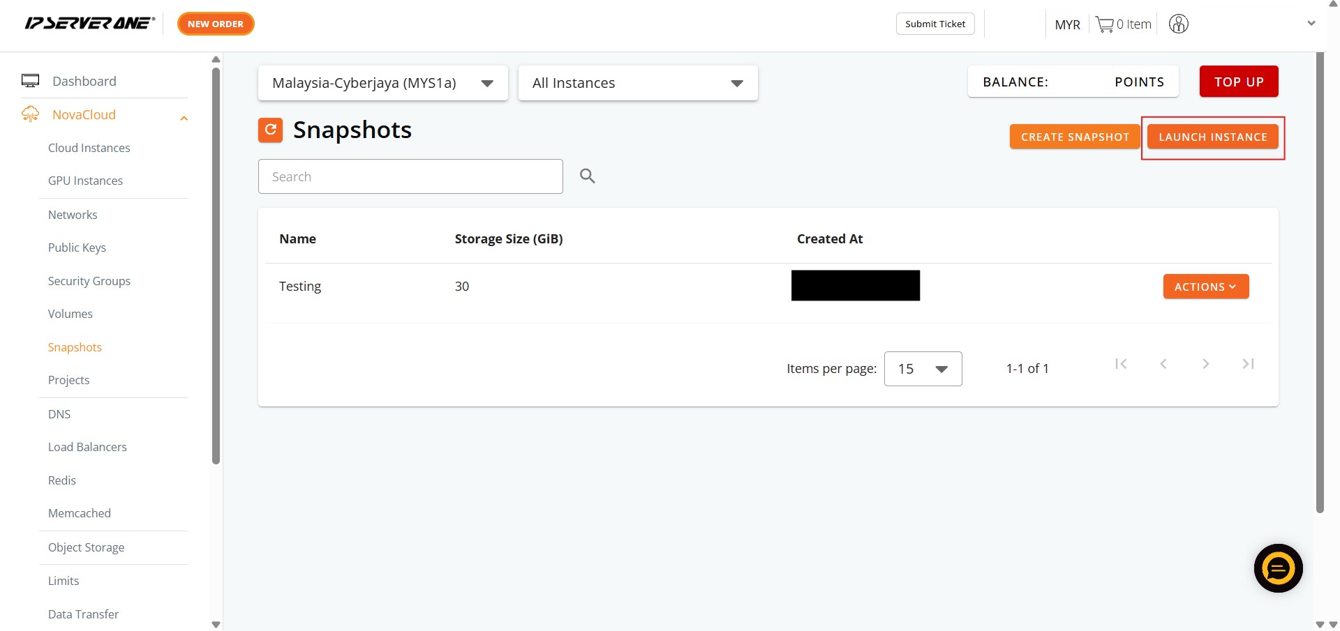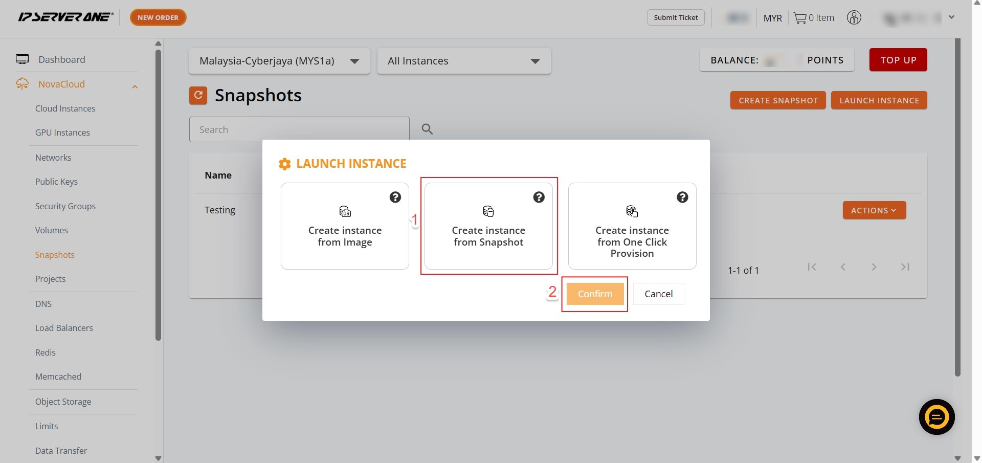 How to Launch a Cloud Instance from an Existing Snapshot in Customer Portal