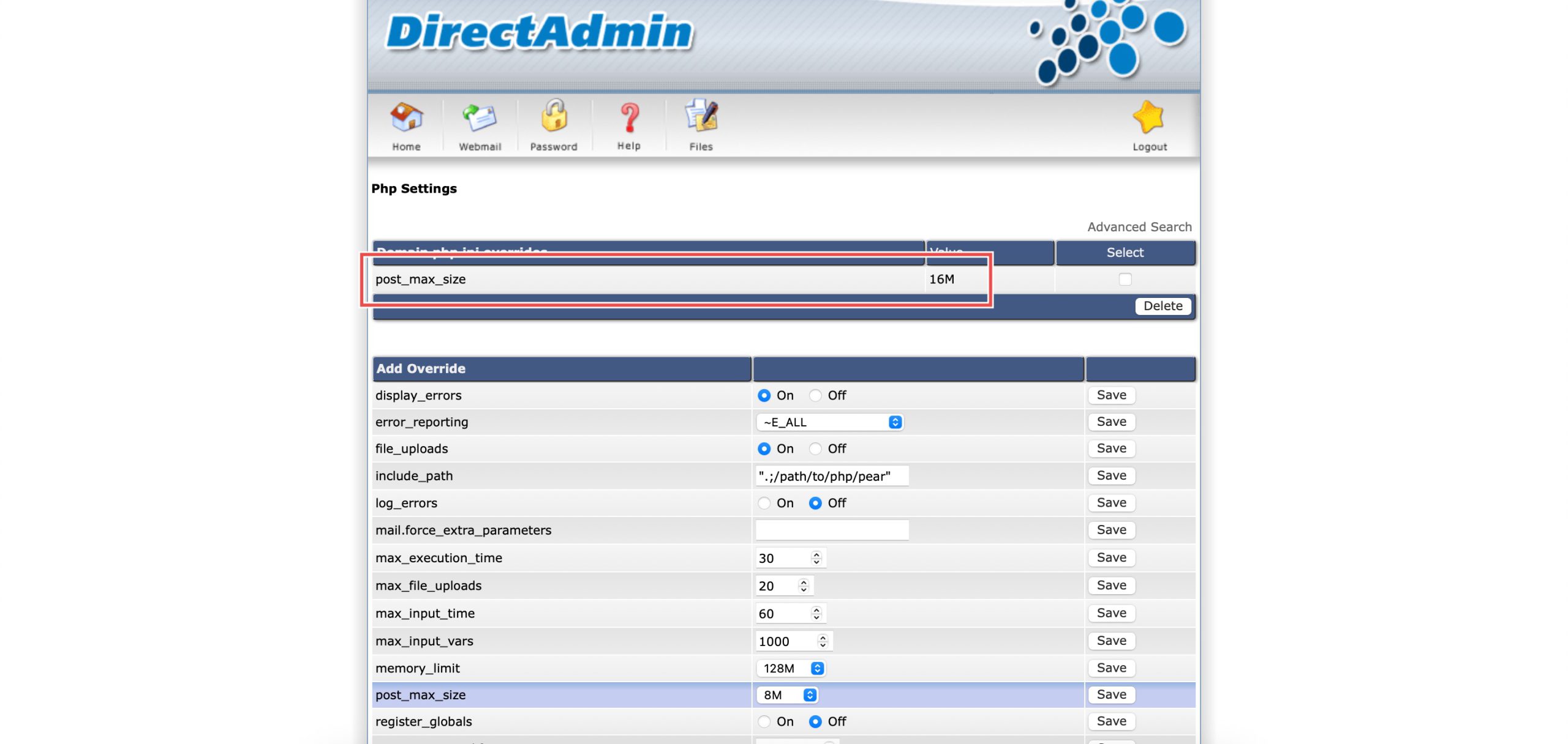 How to Modify the Maximum Post Data Size in DirectAdmin (Enhanced Skin)