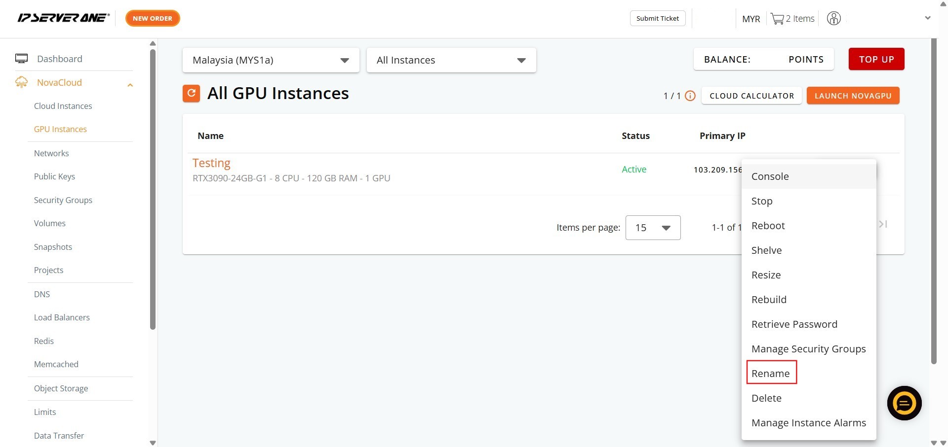 Customers who utilize GPU infrastructure, such as NovaGPU – GPU as a Service, frequently manage multiple resources dedicated to varied tasks like AI training, fine-tuning, or deployment. When the initial name of a GPU instance is no longer suitable for its current usage, a rename is necessary for optimal organizational clarity and management.