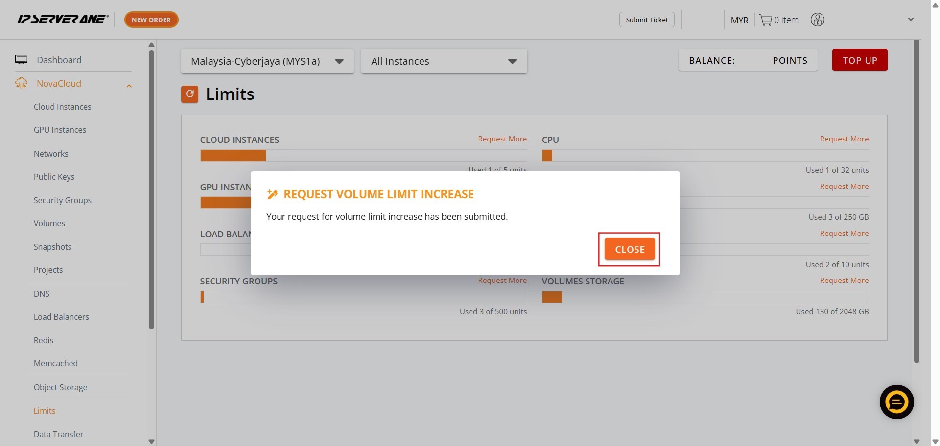 This professional guide outlines the precise steps required to formally request an increase in your Volume limits within the Customer Portal. This crucial process of scaling your storage resources is managed efficiently through the NovaCloud interface, ensuring that you can initiate resource expansion as soon as additional capacity is needed. NovaCloud is described as an affordable, reliable, and highly secure cloud computing service.