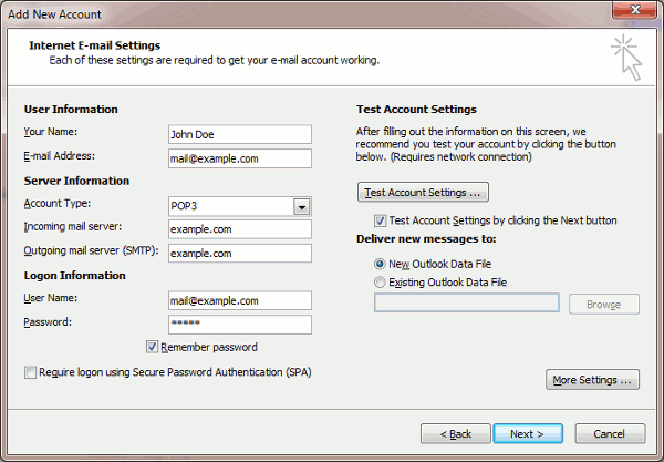 How to setup email address in Microsoft Office Outlook 2010