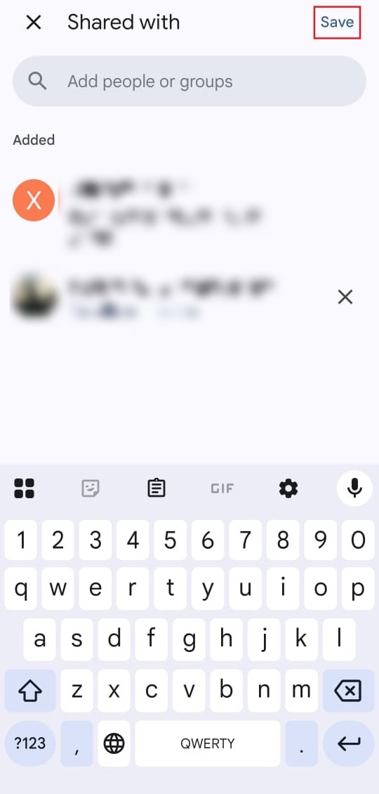 - Click save to finalize the sharing invitation.