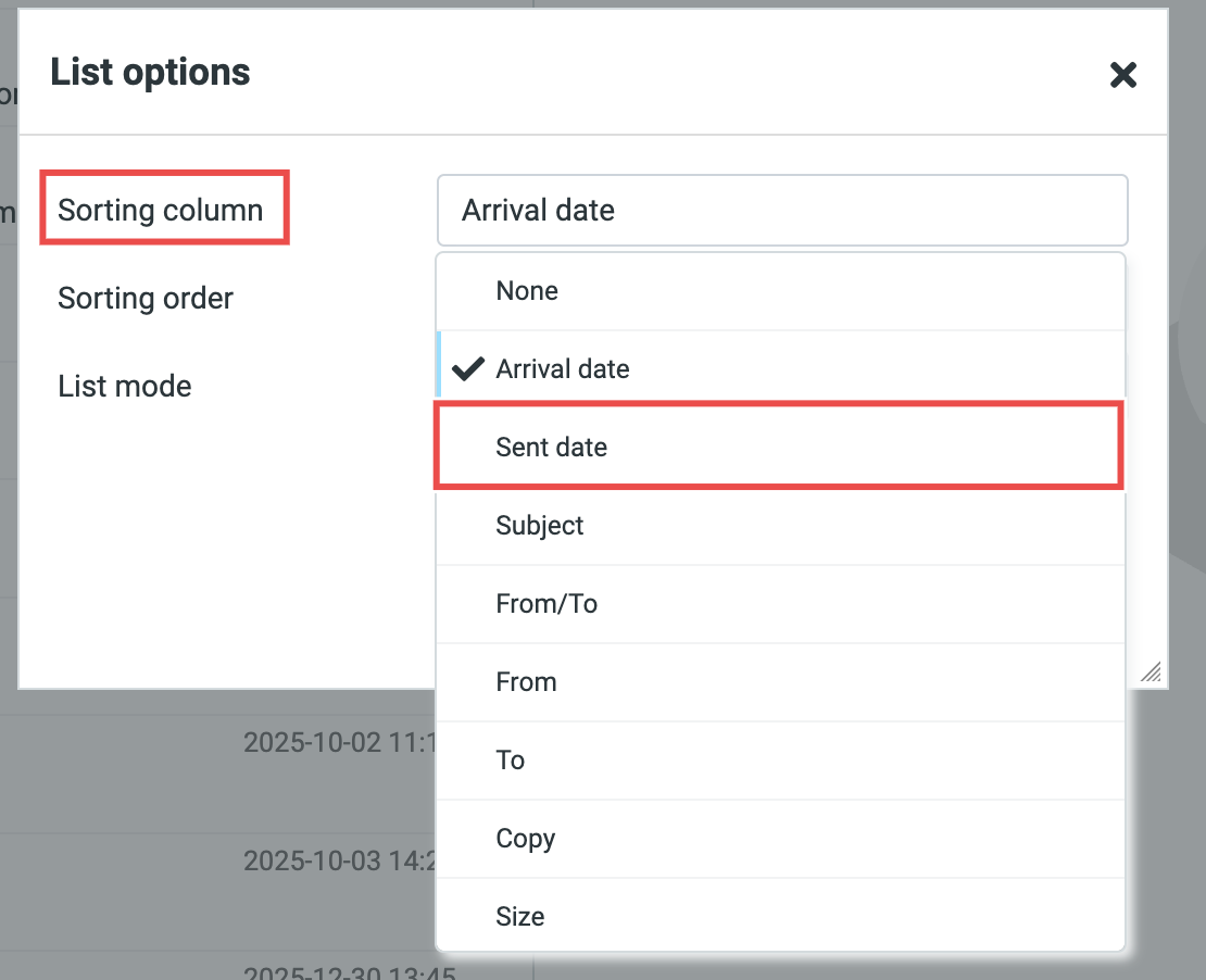 - Select Sent Date for the Sorting Column.