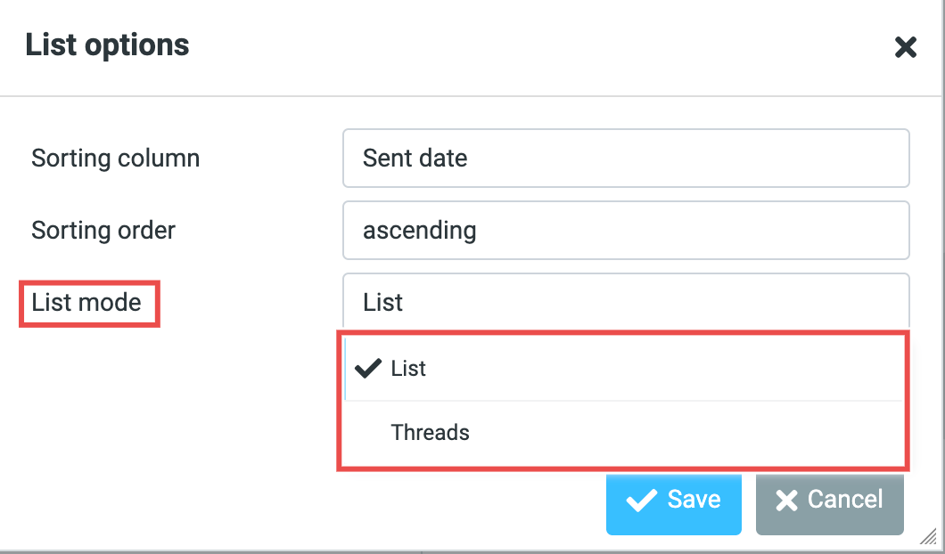 - Select either List and Threads as you desired.