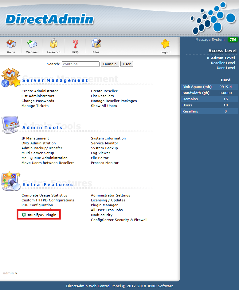 The URL to your DirectAdmin typically will be like <domain>:2222 or <server IP>:2222. - If you have not yet install, you may refer to HERE.