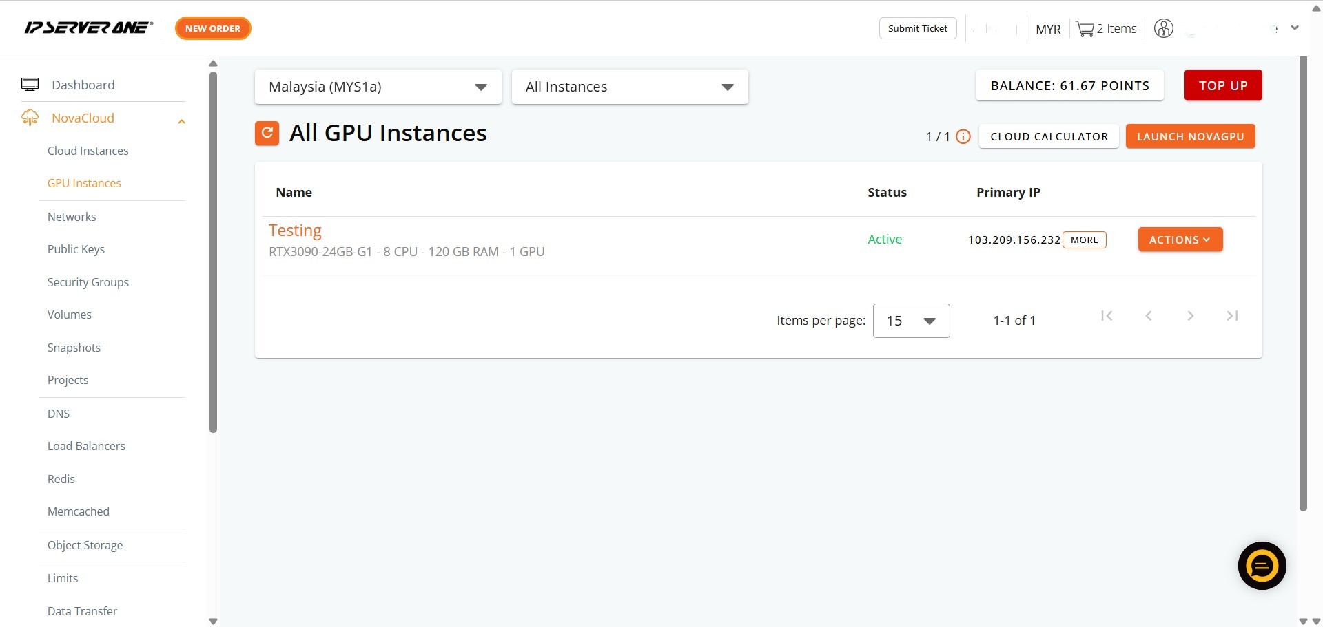 • Following the execution Step 5, the Customer Portal will automatically execute a redirection. You will be instantly routed to the GPU Instance Page.