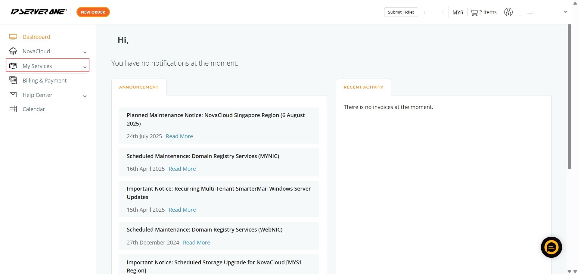 • Once successfully logged into your Customer Portal account, navigate to the left navigation panel of the dashboard. Click on My Services.