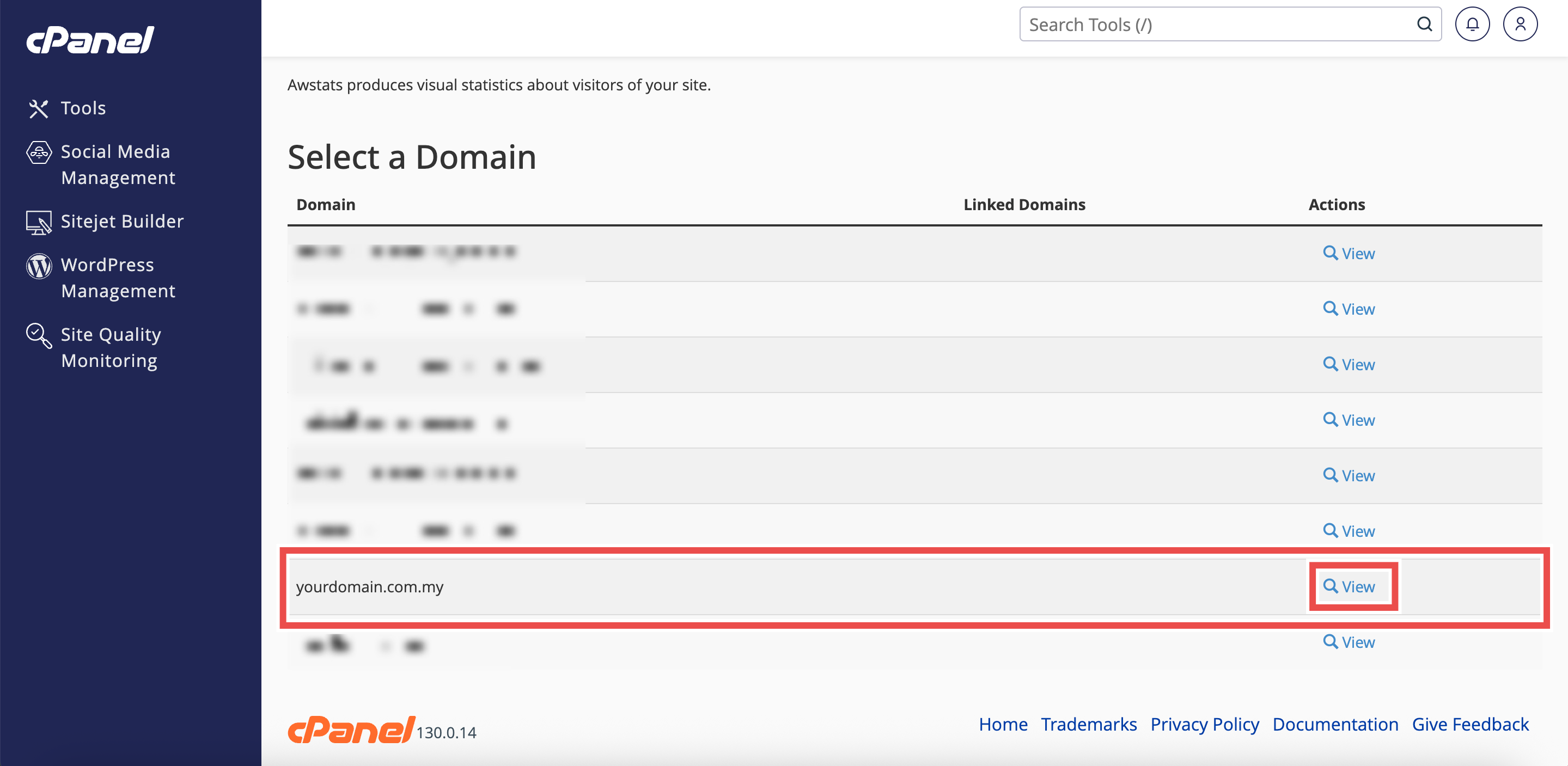 - Locate the domain you wish to view and click View.
