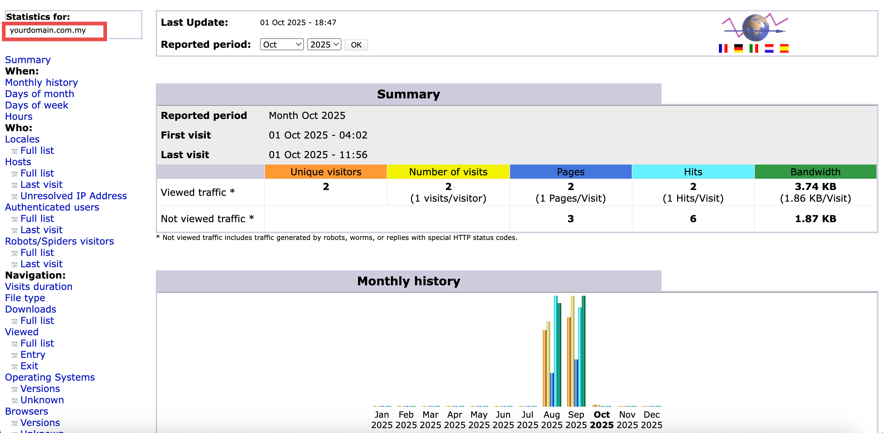 - Ensure that the AWStats interface opens successfully and displays traffic statistics for the selected domain.