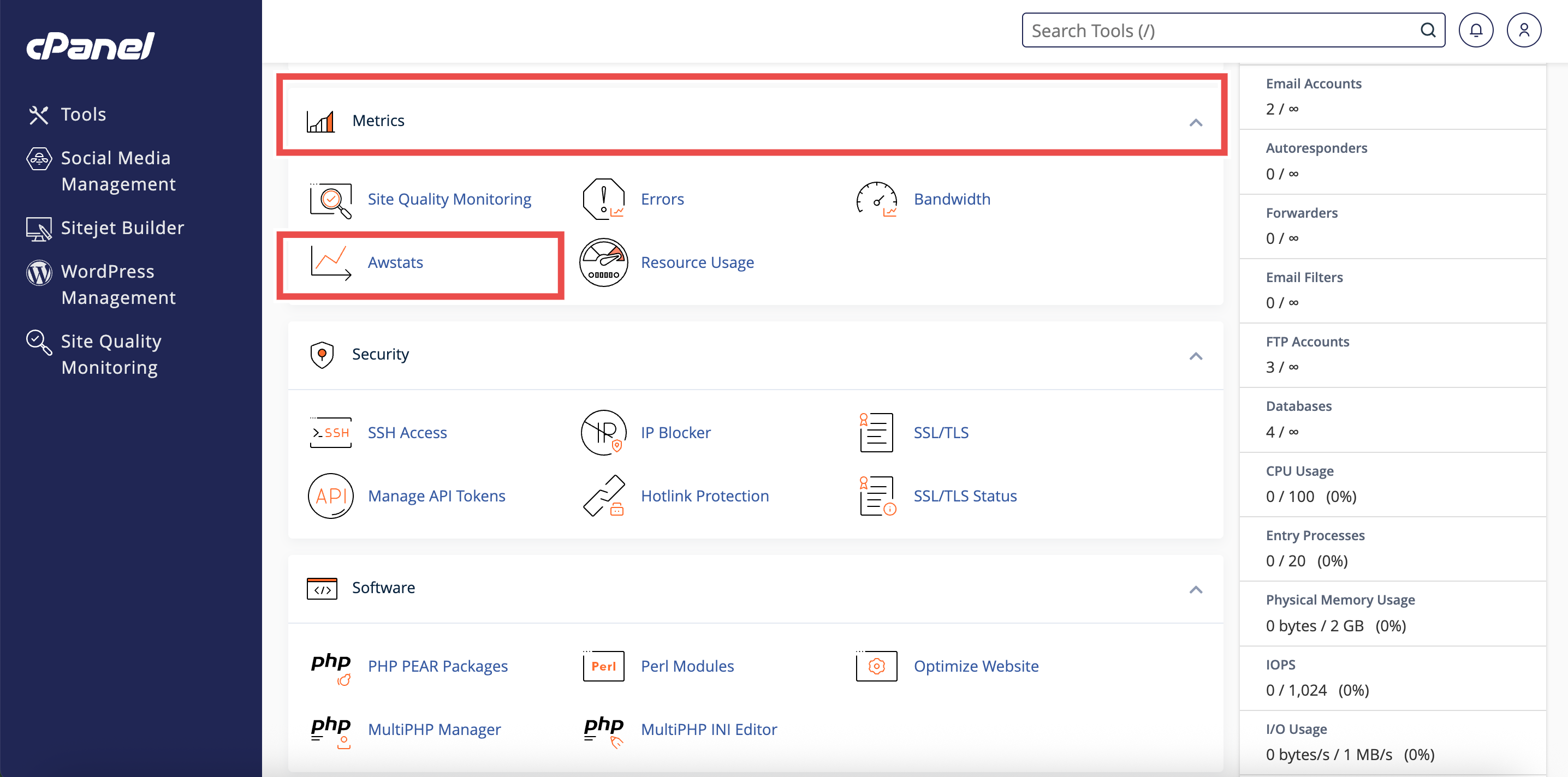 - Under the Metrics section, click AWStats.